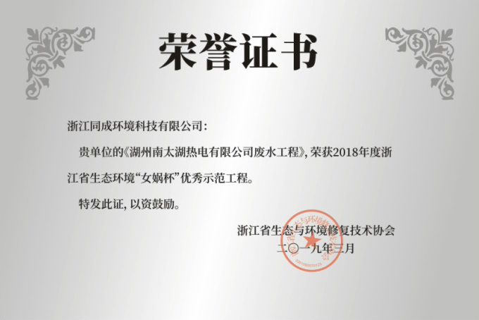 2019年度浙江省生態環境“女媧杯”優秀示范工程